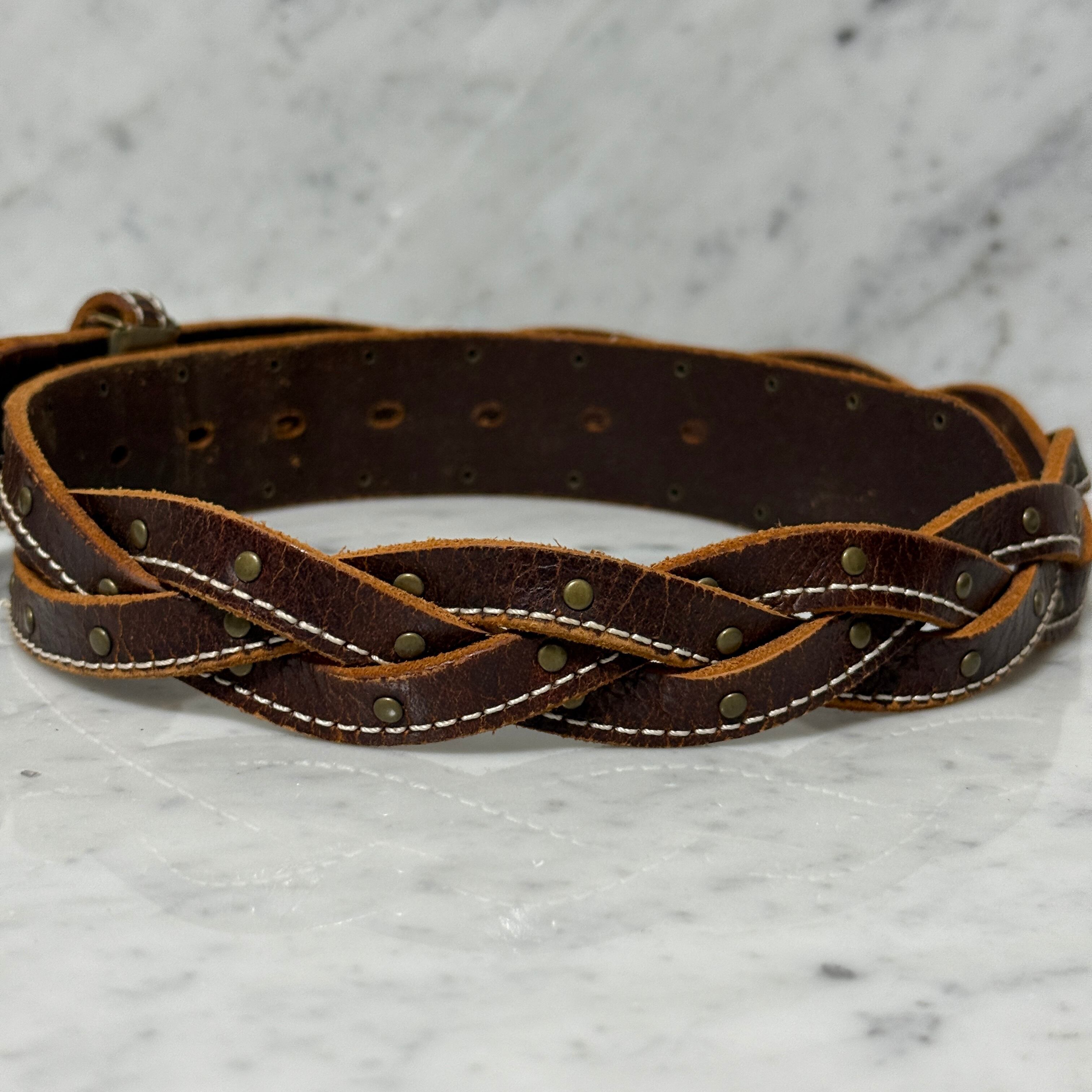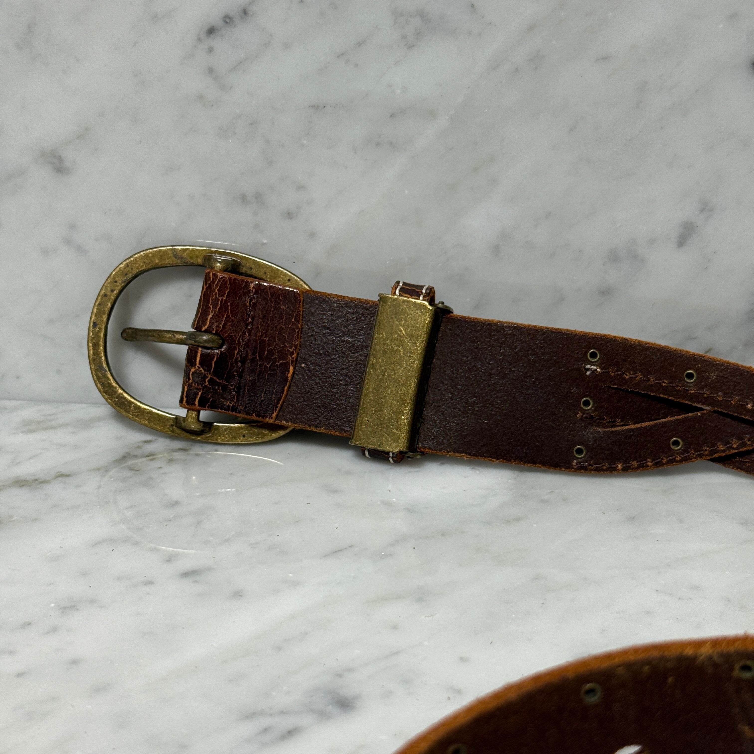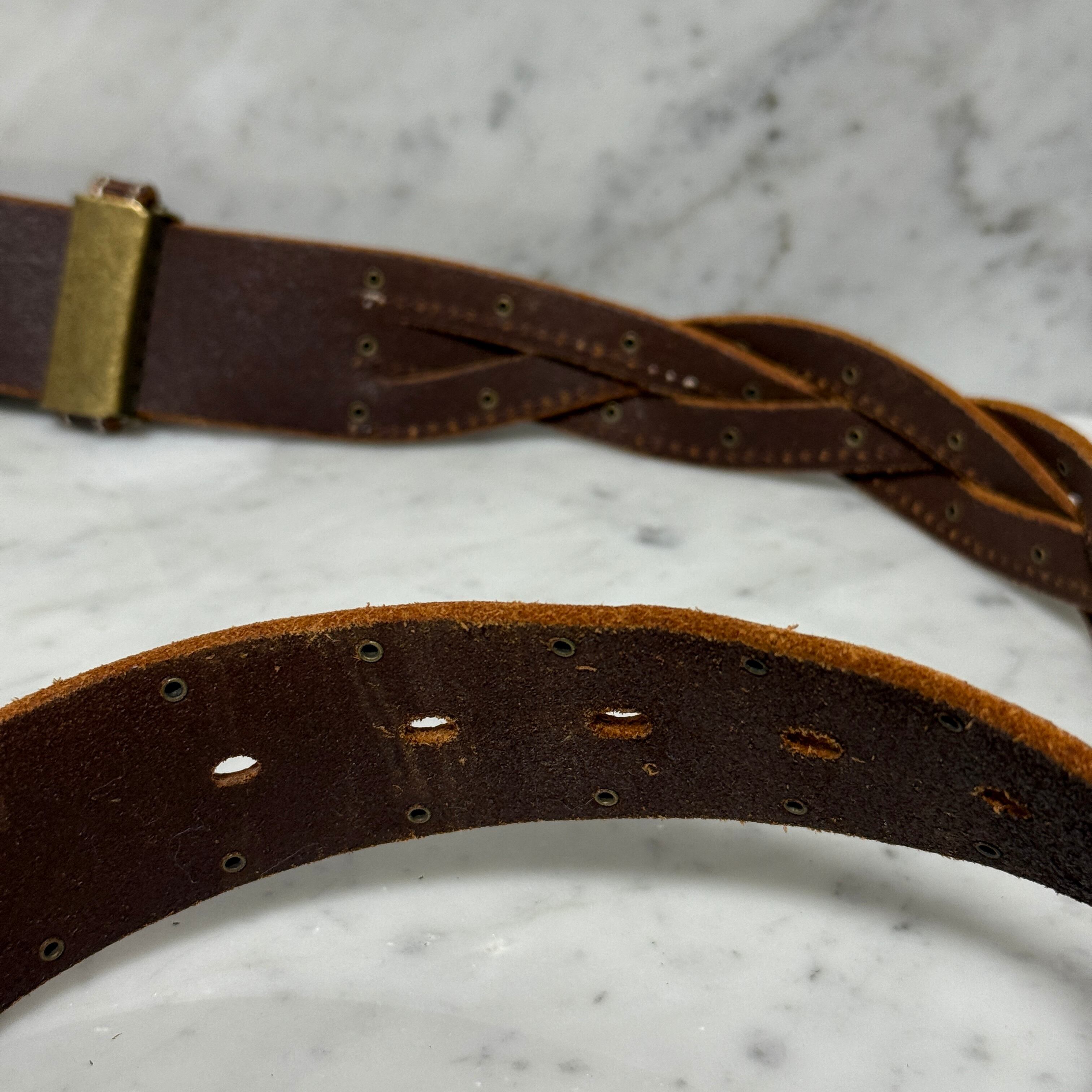 90s OLD vintage ベルト 本革 レザー ベルト ブラウン スタッズ